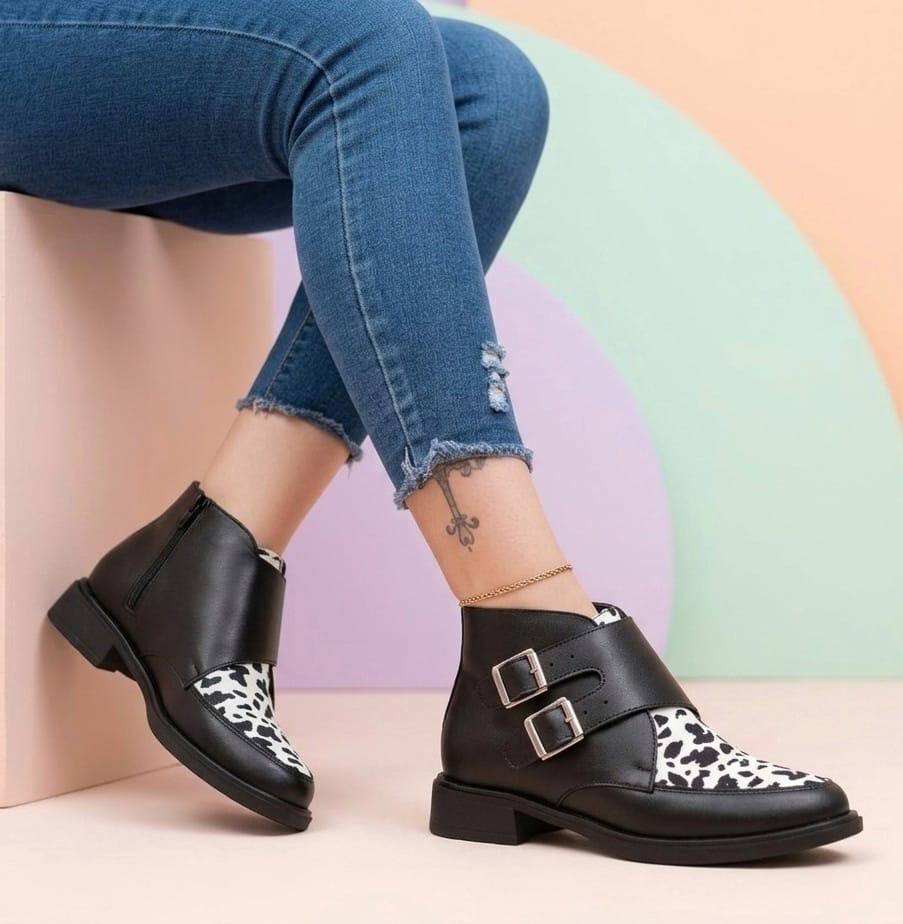 Botines, Negro, hueso, marron
